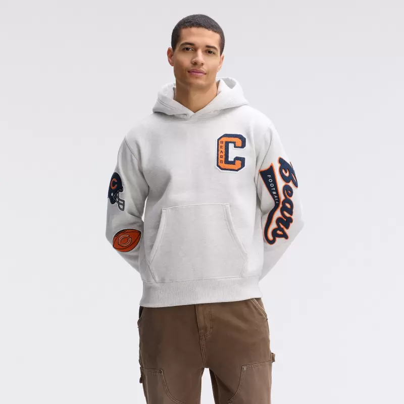 Fanatics Heather Gray Chicago Bears IconicFleece Letterman Hoodie