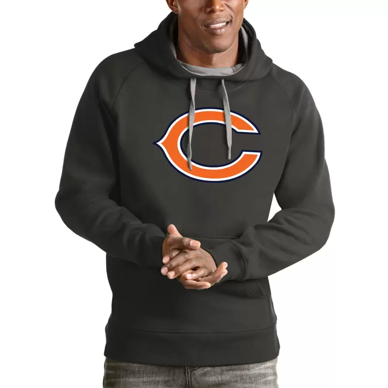Men’s Antigua Charcoal Chicago Bears Logo Victory Pullover Hoodie