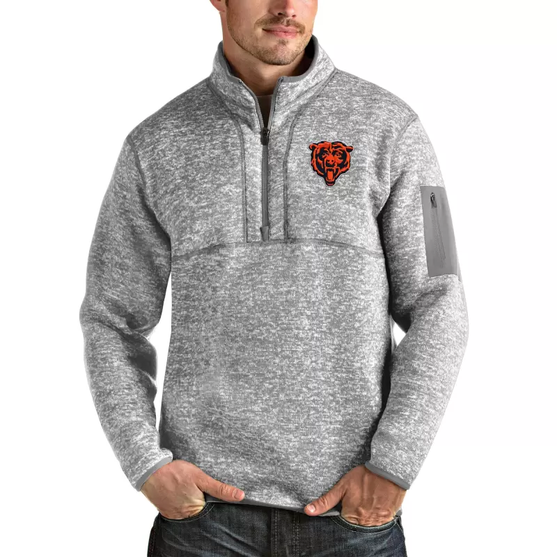 Men’s Antigua Heather Gray Chicago Bears Bear Head Fortune Quarter-Zip Pullover Jacket