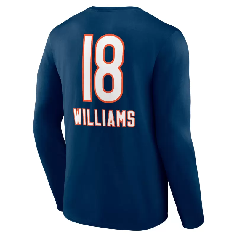 Show your Chicago Bears pride with this Caleb Williams Name & Number Team Wordmark Long Sleeve T-Shirt. Made from breathable cotton, this tee keeps you feeling fresh and comfortable whether you’re at the game or on the go. With Caleb Williams’s name and #18 boldly displayed on the back, this shirt lets everyone know you’re a true Chicago Bears fan.